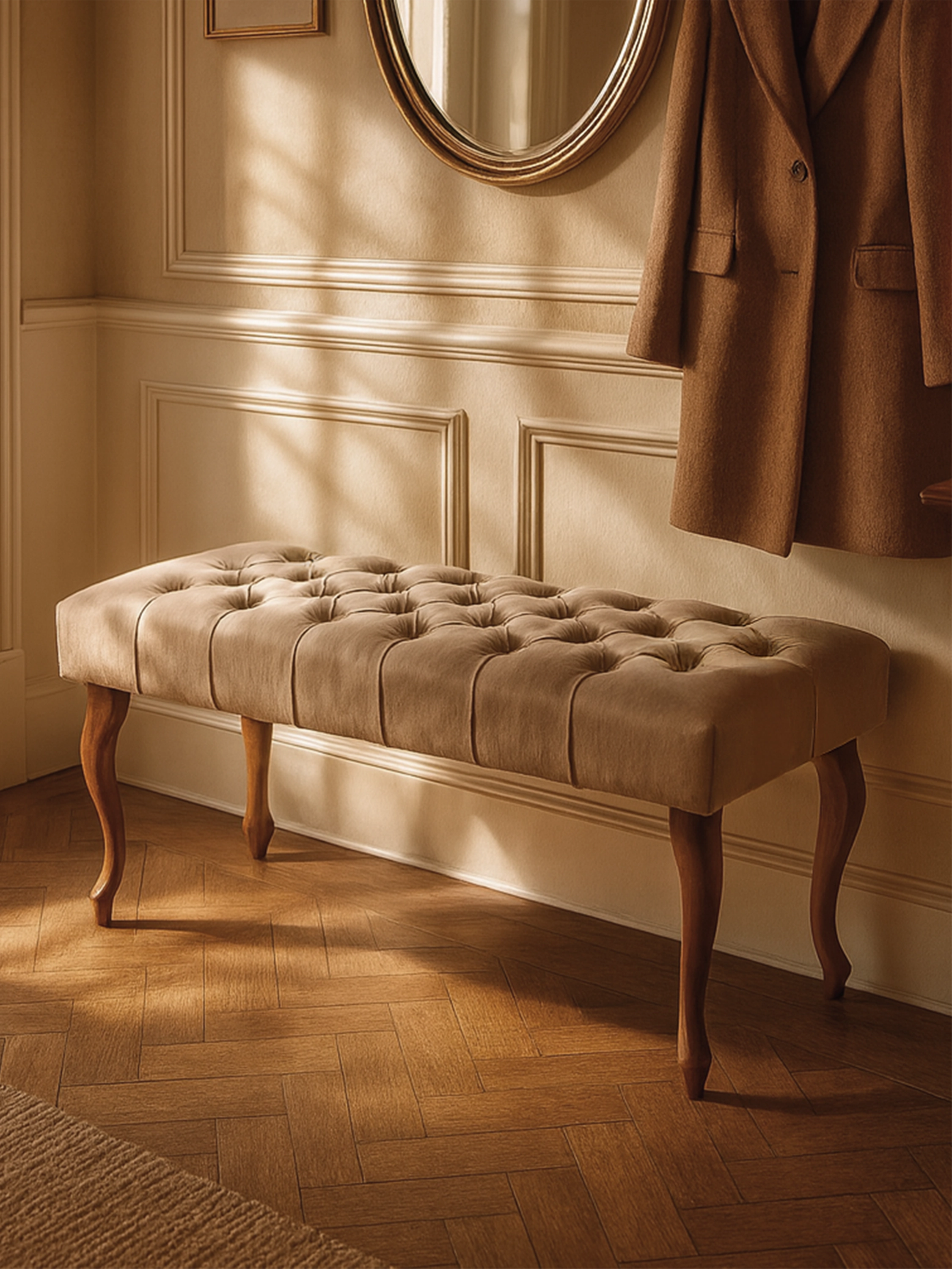 Die handgefertigte, gesteppte Chesterfield-Flurbank passt perfekt zu Ihrem Interieur!